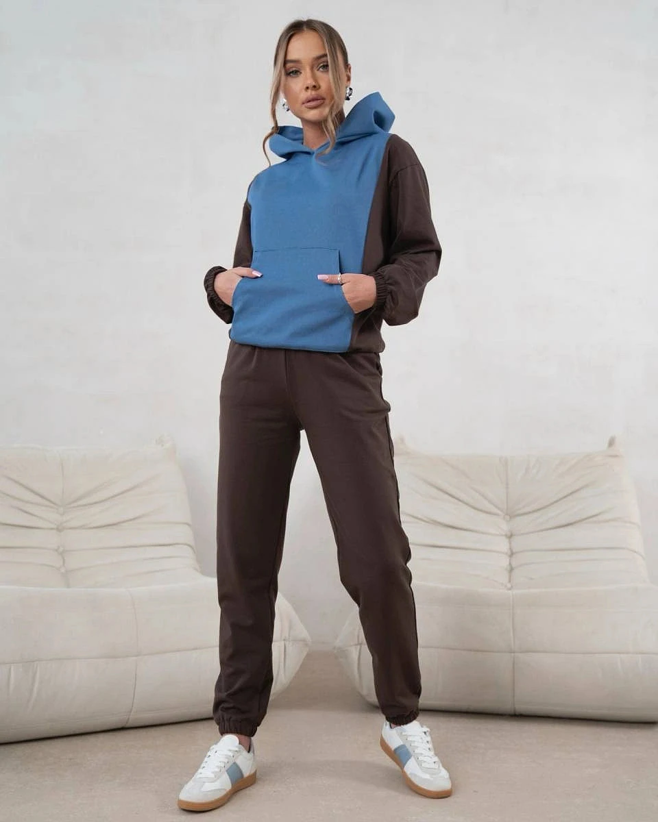 Dámská dvoubarevná tepláková souprava v čokoládově modré barvě (554)