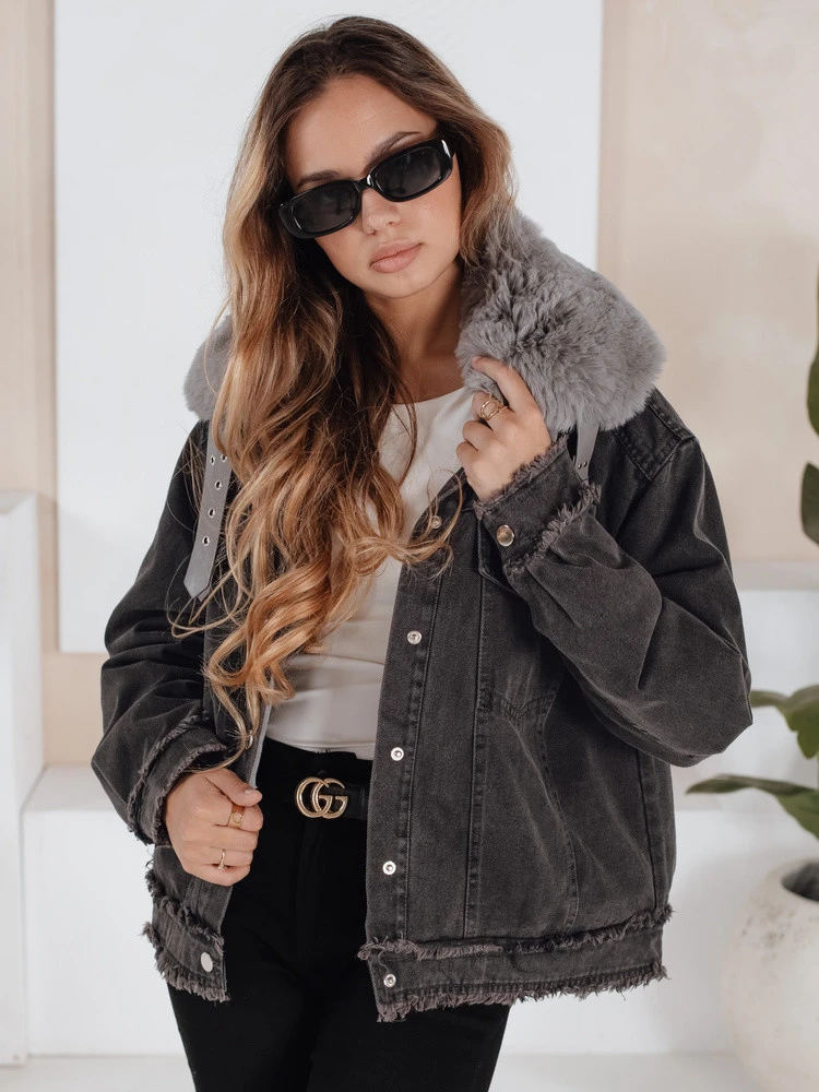 Dámská džínová bunda FURDENIM s umělou kožešinou tmavě šedá FashionStreet TY5185