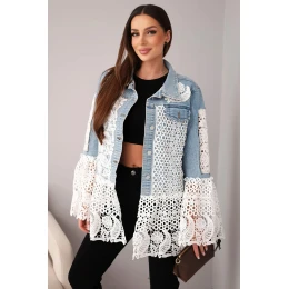 Dámská džínová bunda z bavlny a krajkovým vzorem světle džínová