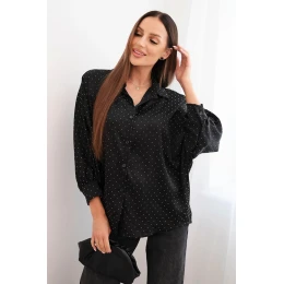 Tato dámská blůza je ideální volbou pro ženy, které si cení pohodlí a stylu. Je vyrobena z měkké, příjemné viskózy s přídavkem elastanu, jemně obepíná siluetu a vytváří módní efekt oversize. Subtilní lesk materiálu a drobné zdobení jí dodávají výjimečný charakter – skvěle se hodí jak do práce, tak na večerní výlety.