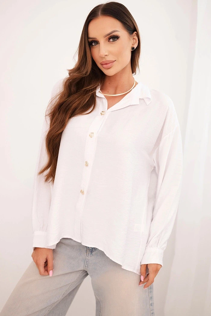 Dámská elegantní košile z viskózy s ozdobnými knoflíky bílá