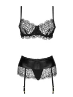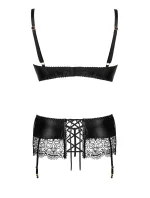 Dámská erotická souprava Adelia set BEAUTY NIGHT FASHION - černá barva - z latexového materiálu - podprsenka, podvazkový pás a tanga - podprsenka a spodní lem podvazkového pásu z průsvitné krajky - šněrování na hýždích