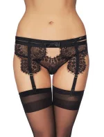 Dámská erotická souprava Roca set 7-HEAVEN - černá barva - s podprsenkou, kalhotkami, podvazkovým pásem a punčochami - na tenkých elastických páscích - z velmi jemného tylu s detailní výšivkou květin - podprsenka má nevyztužené trojúhelníčkové košíčky bez kostic - uprostřed dekoltu mašlička - ladící kalhotky na tenkých elastických páscích
