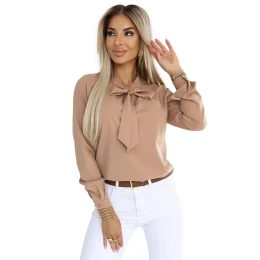 Dámská halenka 140-27 NUMOCO - hnědá barva - z příjemného vzorovaného materiálu - s dlouhými rukávy - se zavazováním ve výstřihu