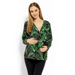 Dlouhé dámské šaty se španělským výstřihem a vzorem zelených listů a zlatých řetízků 194-4 - Numoco