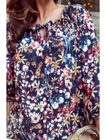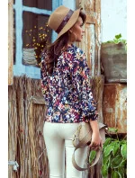Dámská halenka 271-2 Numoco - květovaný vzor - typ "španělka" - dlouhé rukávy - na zavazování - elastická gumička na rukávech a ramenou