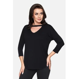 Dámská halenka , 3/4 rukávy se špičatým výstřihem a ozdobným páskem.
