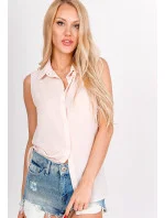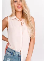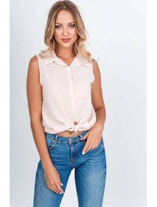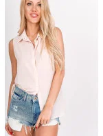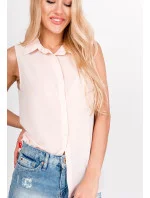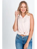 Dámská halenka s dlouhým rukávem a hlubokým výstřihem světle růžová