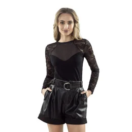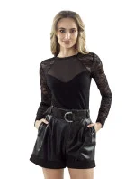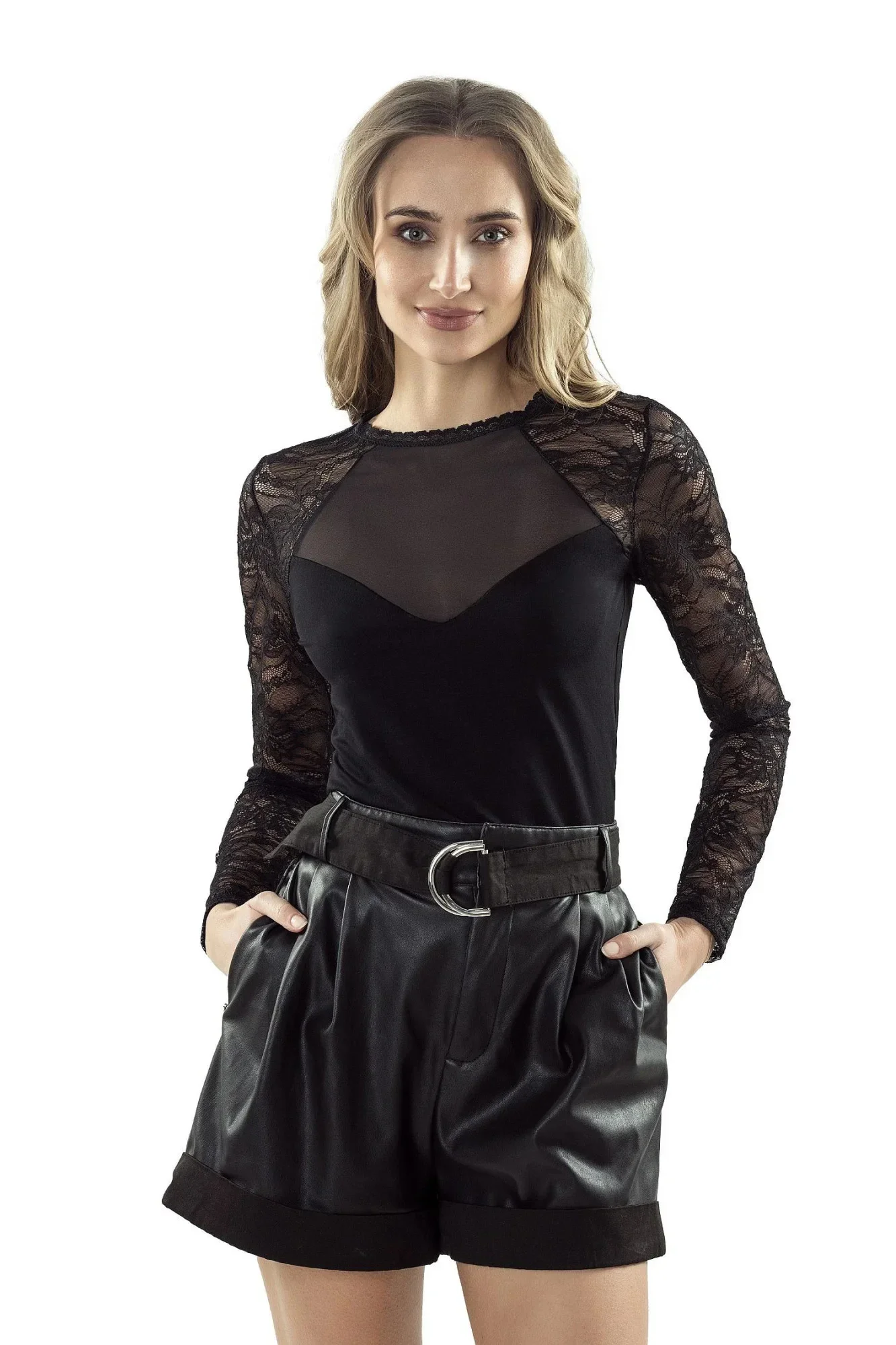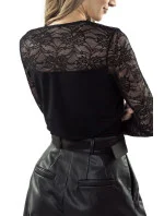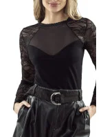Dámská halenka Enrica ELDAR - černá barva - z vysoce jakostní viskózy - výstřih z průhledné látky - dlouhé krajkové rukávy