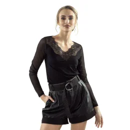 Dámská halenka Giulietta ELDAR - černá barva - z vysoce kvalitní viskózy - dlouhé tylové rukávy - výstřih a záda z efektní krajky