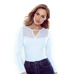 Dámská košilka Heidi Eldar - z vysoce kvalitní bavlny - dlouhé rukávy - výstřih a zadní část zdobené průsvitným tylem