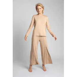 Dámský viskózový top s dlouhým rukávem. Přirozená měkkost a pružnost viskózy, na zádech s padavým kulatým výstřihem u krku, znamená luxus a eleganci.