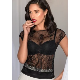 Objevte nadčasovou eleganci a ženskost s krajkovou halenkou Leilieve, dokonalý kousek, který dodá šarm každému outfitu. Halenka z jemné krajky přináší lehkost a sofistikovanost, zatímco pružné a pohodlné materiálové složení zajišťuje příjemné nošení po celý den. Elegantní střih, který lichotí siluetě a zdůrazňuje ženské křivky. Halenka má díky krajce romantický a jemný vzhled, ideální kombinace s elegantními kalhotami, sukněmi nebo pod sako. Na spodní části je našitý vyšší lesklý saténový pružný lem.