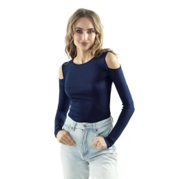 Dámská halenka Liv dark blue ELDAR - tmavě modrá barva - z vysoce kvalitní proužkované viskózy - dlouhé rukávy - odhalená ramena