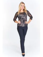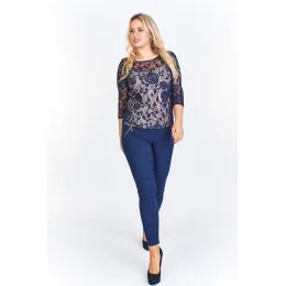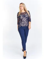 Dámské krajkové šaty na ramínka s páskem středně dlouhé tmavě modré - Tmavě modrá - MAYAADI