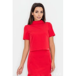 Jednoduchá halenka s krátkými rukávy a vrstveným rolákem. Halenka s krytým zipem. Ideální pro mnoho příležitostí.