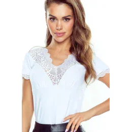 Dámská halenka Milana ELDAR - bílá barva - z vysoce jakostní viskózy - krátké rukávy zakončené krajkovým lemováním - horní část z krajkové aplikace