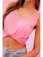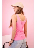 Dámská halenka na ramínka s ozdobným lemem světle růžová