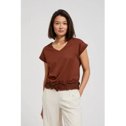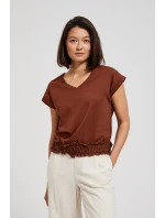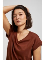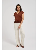 Široké dámské viskózové kalhoty s elastickým pasem hnědá