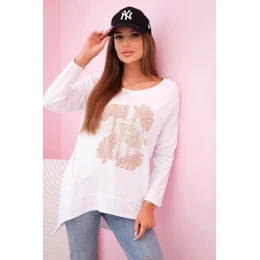 Dámská halenka s kapsami a ozdobným potiskem bílý