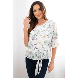 Dámská halenka s květinovým vzorem a vázáním dole tmavě mátová