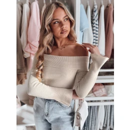 Halenka s výstřihem na ramena, který krásně odhaluje ramena. Přiléhavý střih zvýrazňuje siluetu, zatímco široké rukávy dodávají eleganci. Díky materiálu příjemnému na dotek se příjemně nosí. Skvěle se hodí k džínám nebo tužkové sukni.