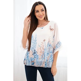 Dámská halenka s plisovaným rukávem a potiskem modrá