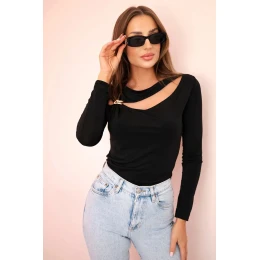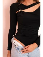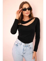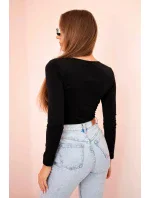 Halenka s 3D grafikou a ozdobnými volánky černá