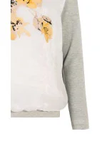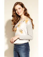 Pletená halenka s květinovým potiskem v barvách podzimního listí.