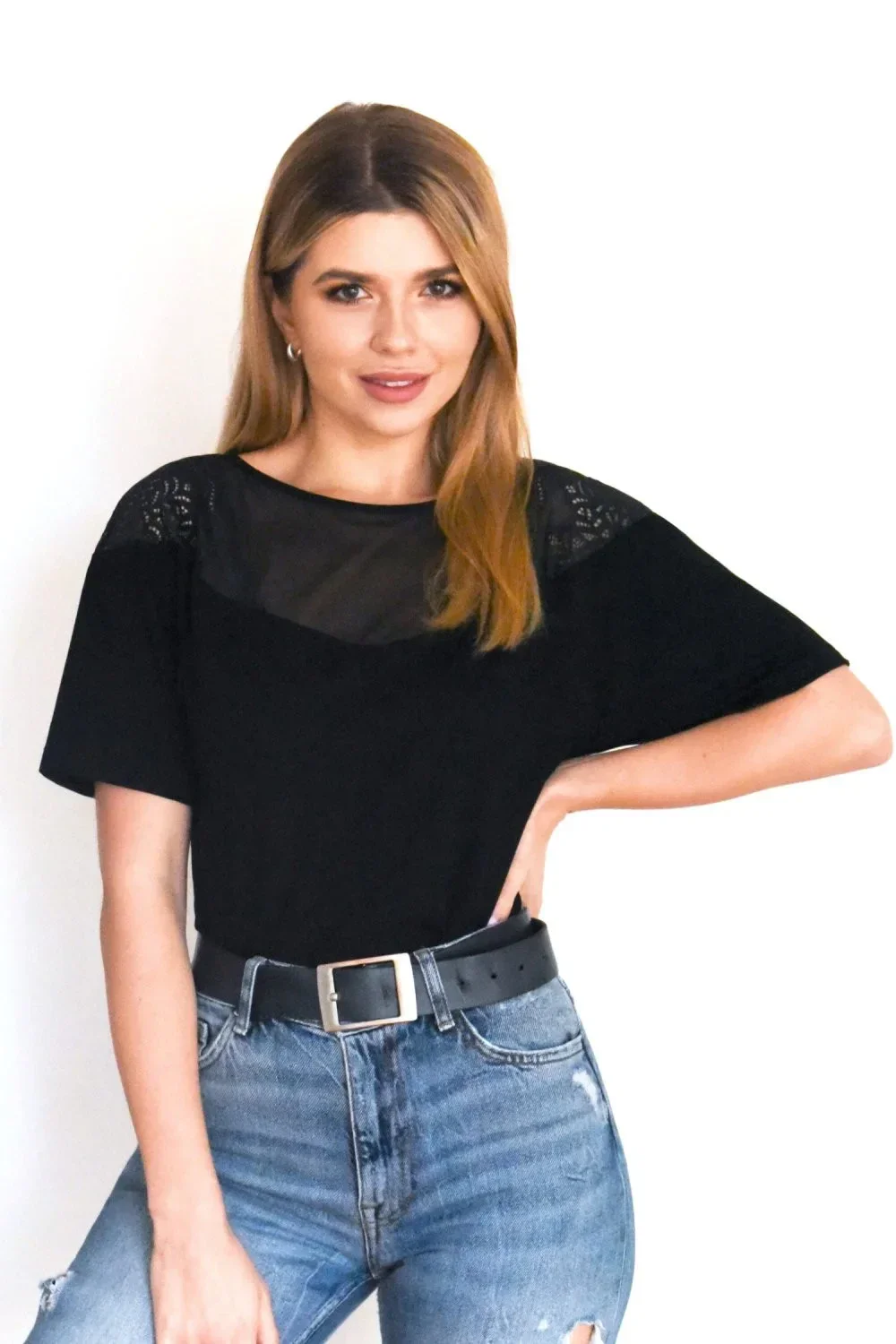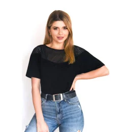 Dámská halenka Solange Eldar - z kvalitní viskózy příjemné na dotyk - krátké rukávy - výstřih zdobený efektní průsvitnou výšivkou