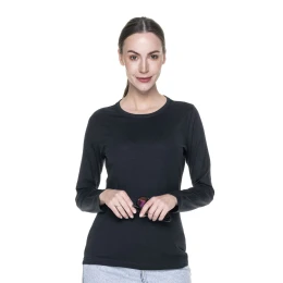 T-shirt damski z długim rękawem wykonany z dzianiny single jersey, fason taliowany, materiał poddany praniu enzymatycznemu, dzięki czemu jest pozbawiony nierówności. Wykończenie silikonowe materiału powodujące że jest miękki i miły w dotyku, dekolt wykończony dwuwarstwowym ściągaczem z elastanem zapewniającym dłuższą trwałość. Taśma wzmacniająca na karku w kontrastowym kolorze, ramiona z taśmą wzmacniającą i stabilizującą, która pozytywnie wpływa na trwałość szwów. Podwójne, gęste szwy do których wykorzystano nici najwyższej jakości. Waga: 175 g/m2, Skład: 100% bawełna czesana ring-spun, podwójne, gęste szwy do których wykorzystano nici najwyższej jakości