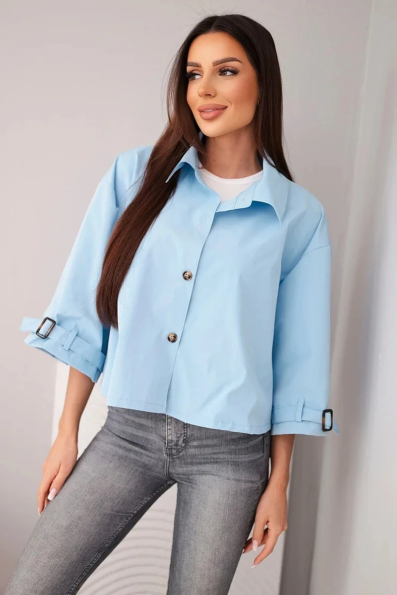Dámská jarní bavlněná bunda zapínaná na knoflíky s límcem modrá