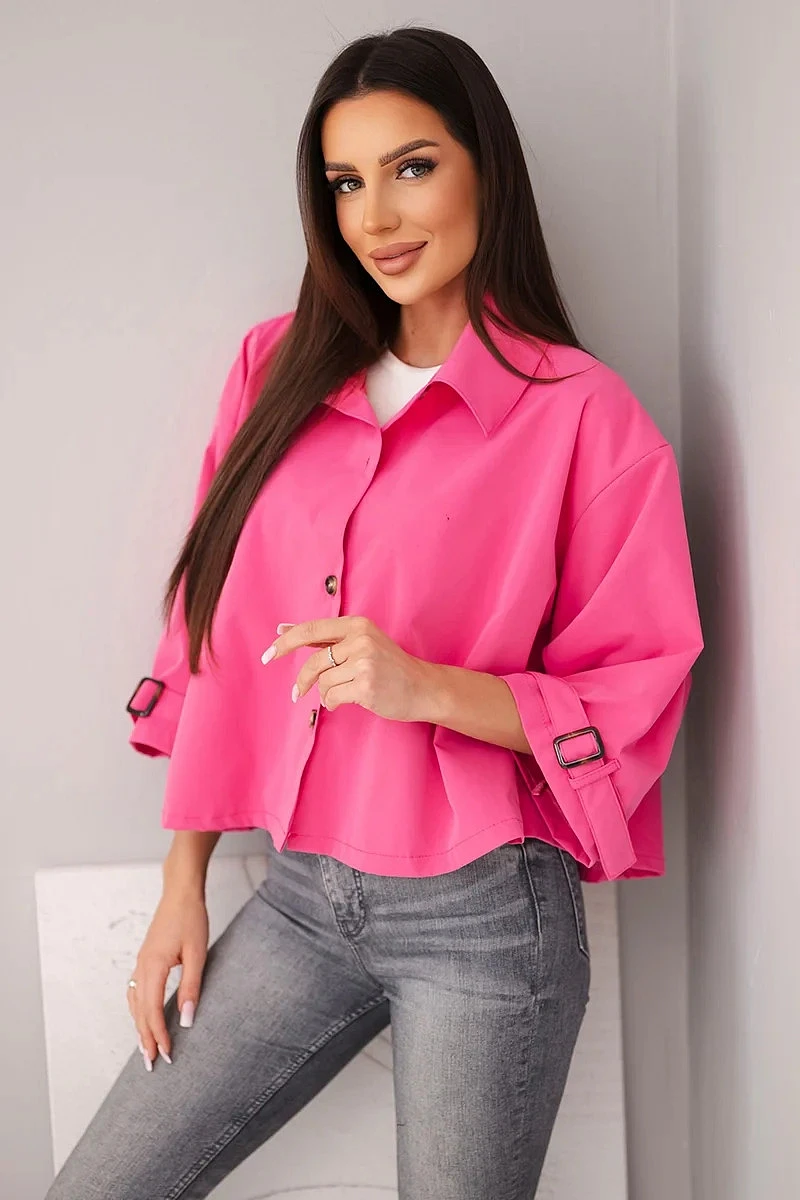 2. Dámská jarní bavlněná bunda zapínaná na knoflíky s límcem růžová
