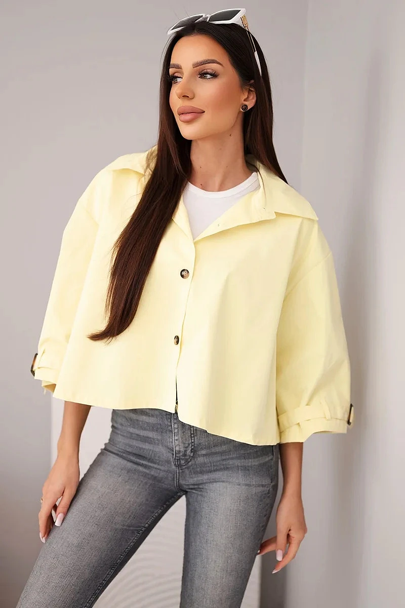 Dámská bunda krátkého střihu je stylovou a moderní nabídkou pro ženy, které oceňují módní vzhled a pohodlí v každodenních outfitech. Model se vyznačuje jednoduchým, lehce oversize střihem, který se hezky přizpůsobí postavě a poskytuje volnost pohybu. Klasický límec a zapínání na knoflíky dodávají celku elegantní charakter, díky čemuž bunda skvěle funguje jak v casual, tak i ve více propracovaných kombinacích.