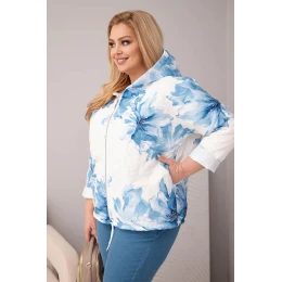 Dámská jarní bunda Plus Size s květinovým vzorem modrá