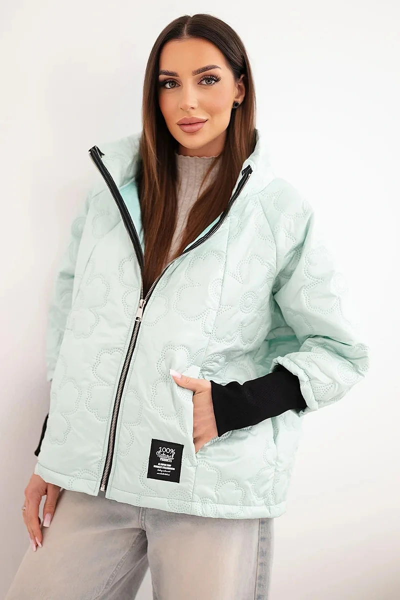 Dámská jarní prošívaná bunda s dekorativním ražením a zipem mintová