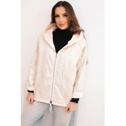 Dámská jarní prošívaná bunda s kapucí a zipem béžová