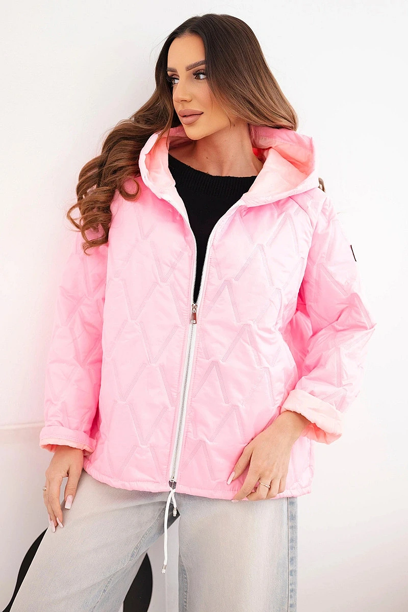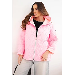 Dámská jarní prošívaná bunda s kapucí a zipem cukrově růžová