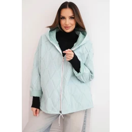 Dámská jarní prošívaná bunda s kapucí a zipem světle mátová