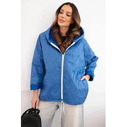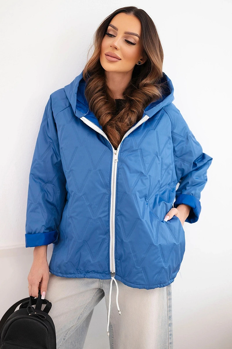 Dámská jarní prošívaná bunda s kapucí a zipem tmavě džínová