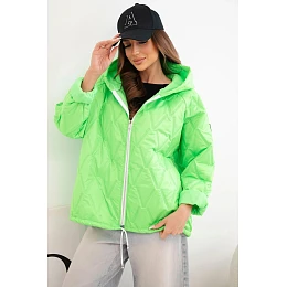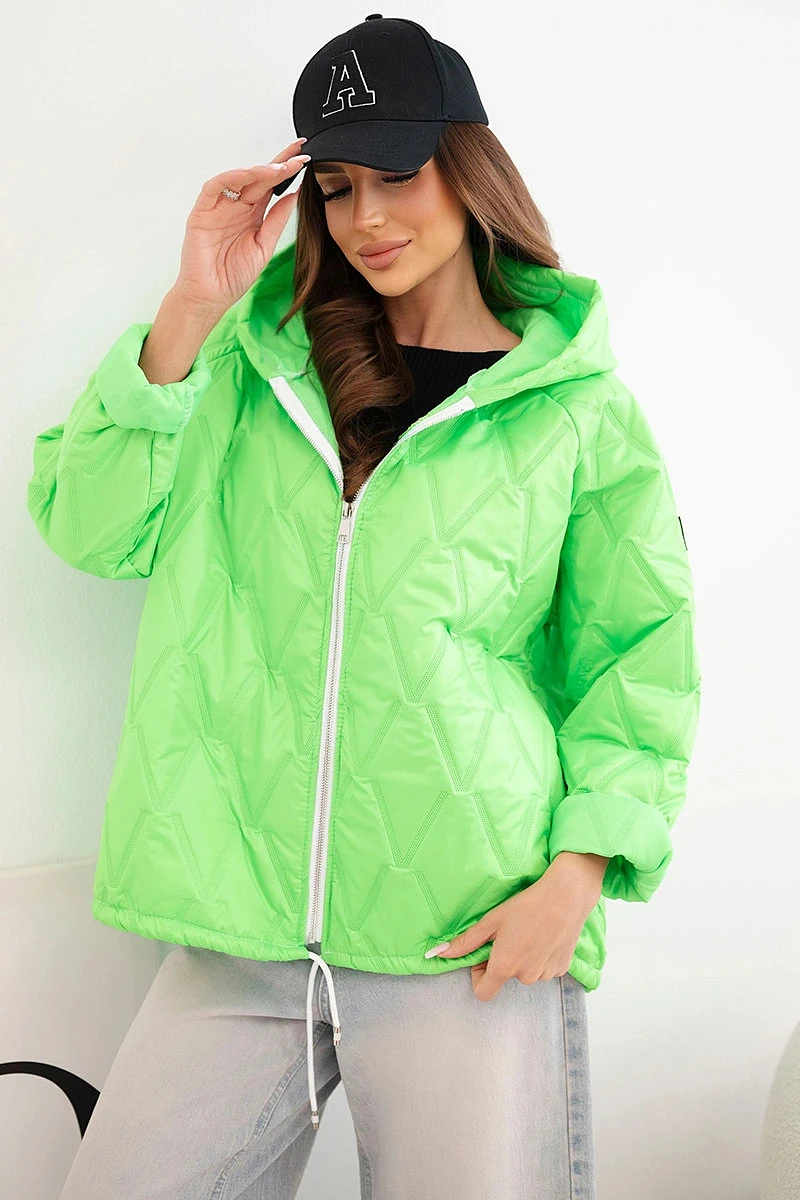 Dámská jarní prošívaná bunda s kapucí a zipem zelený neon