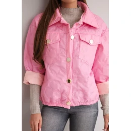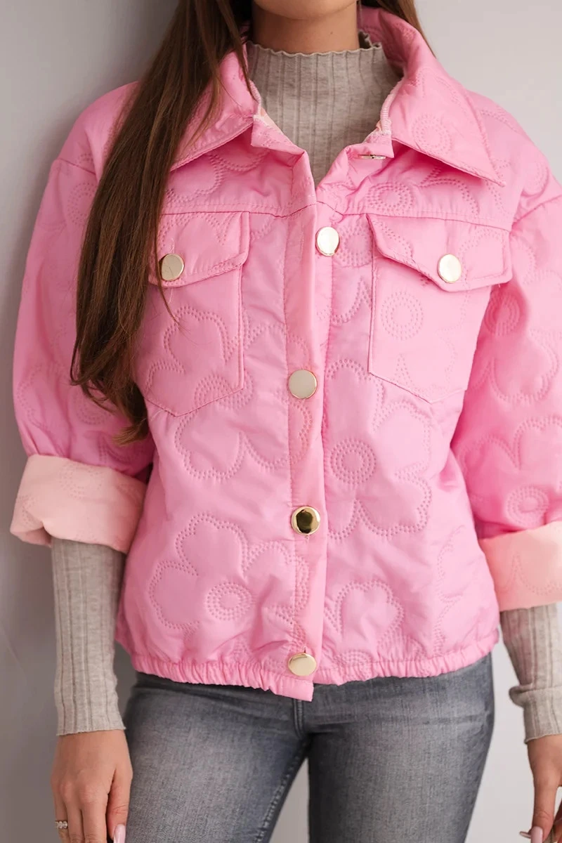 Dámská jarní prošívaná bunda s květinovým vzorem cukrově růžová