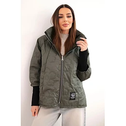 2. Dámská jarní prošívaná bunda s ozdobnou ražbou a zipem khaki