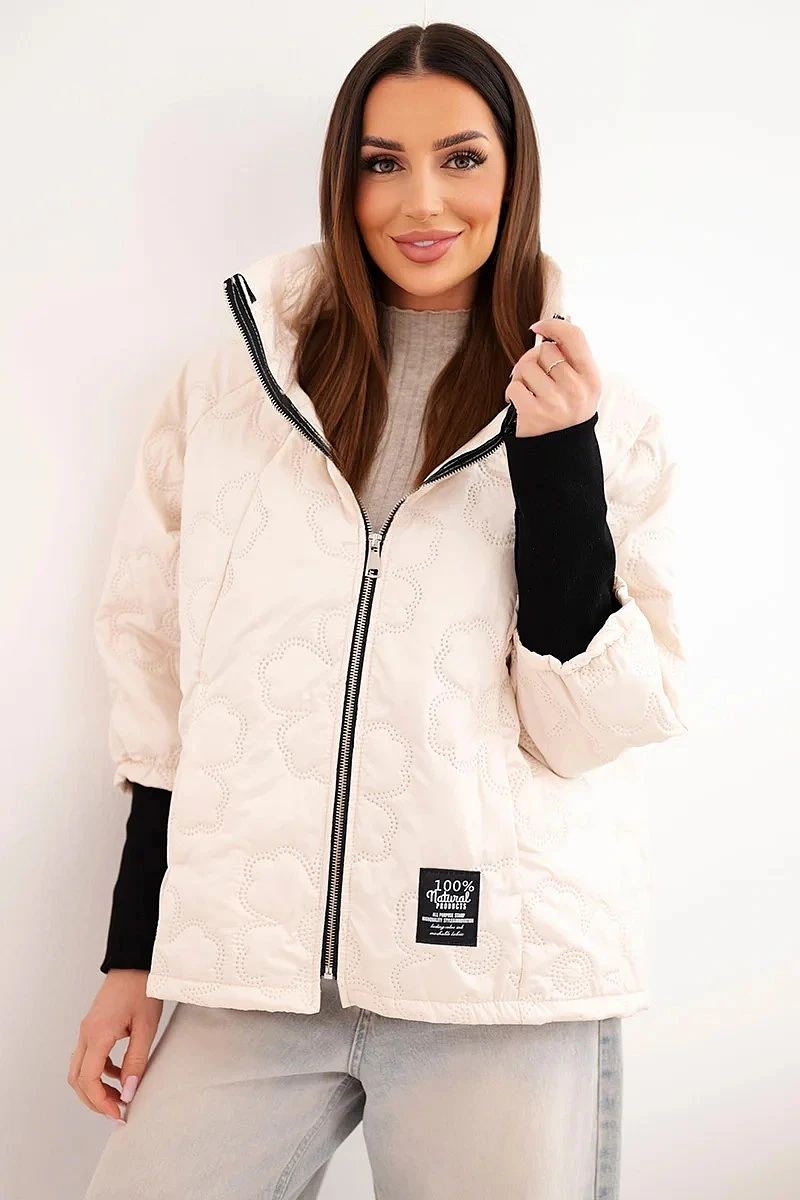 stylová dámská bunda s módním, prošívaným provedením je vynikající volbou pro ženy, které si cení pohodlí a moderního vzhledu. Charakteristické dekorativní prolisy ve tvaru květin dodávají bundě výjimečný charakter a způsobují, že vyniká oproti klasickým modelům. Kratší střih zajišťuje, že bunda hezky sedí na postavě a výborně se hodí pro každodenní outfity.