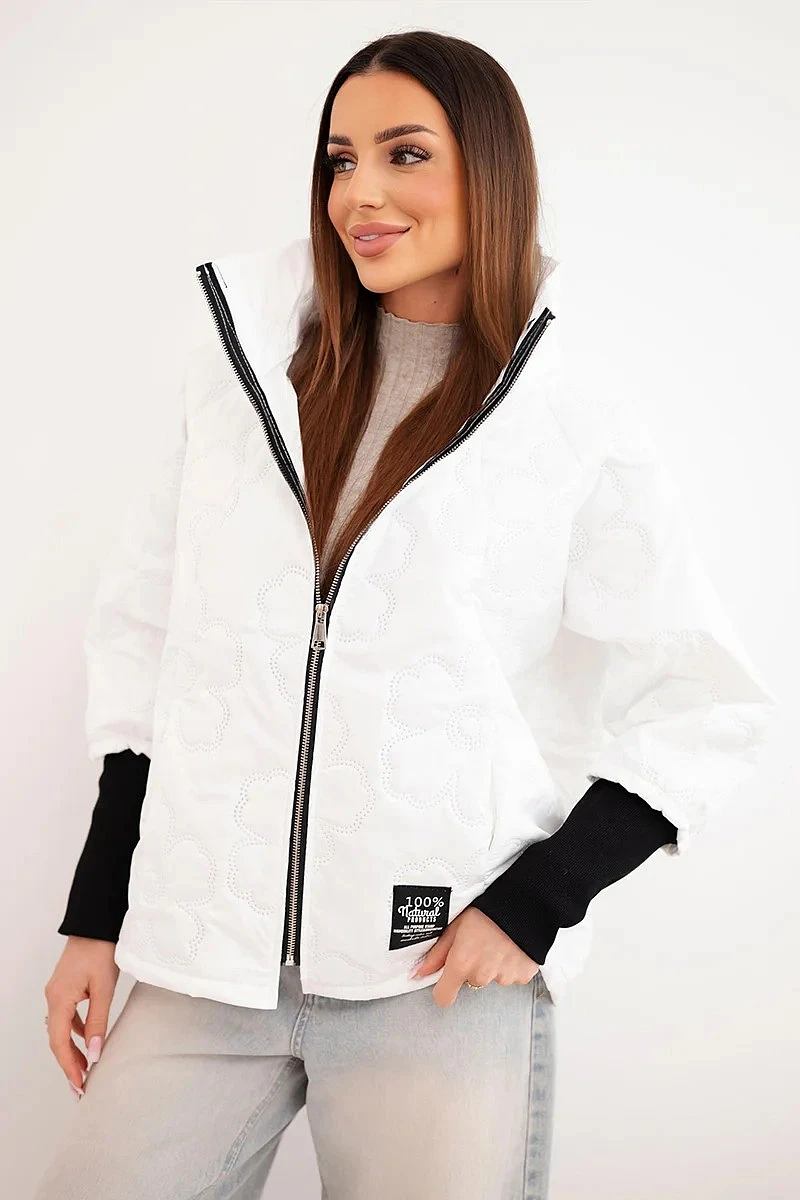 Dámská jarní prošívaná bunda s ozdobným ražením a zipem bílá