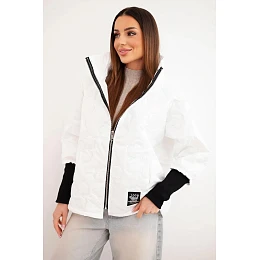 2. Dámská jarní prošívaná bunda s ozdobným ražením a zipem bílá