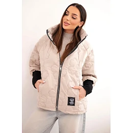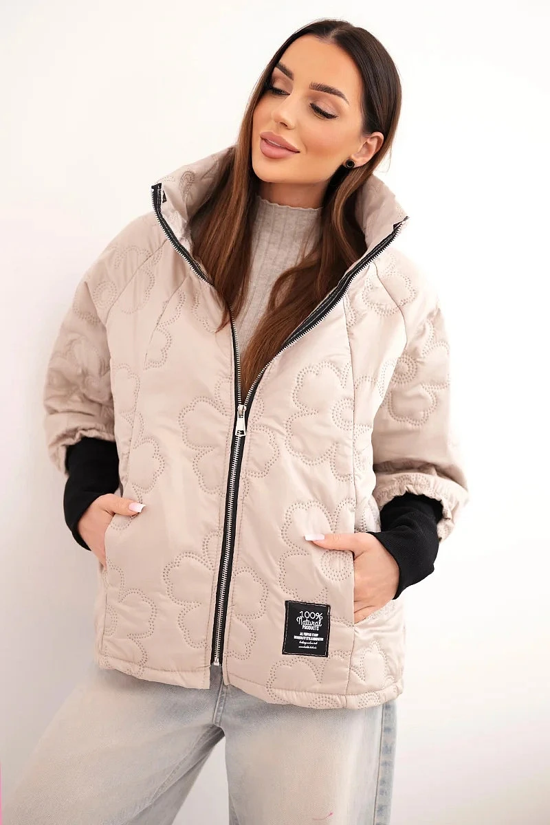 Dámská jarní prošívaná bunda se zdobným ražením a zipem tmavě béžová