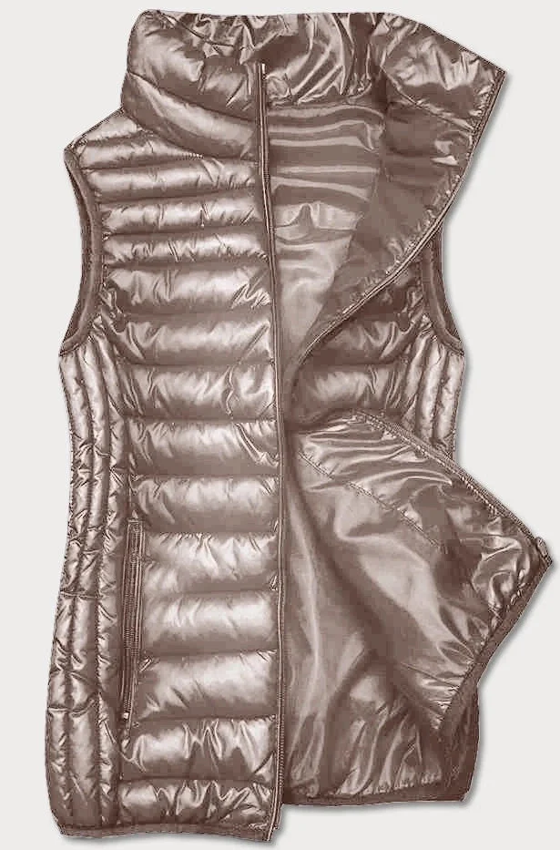 Tmavě béžová dámská vesta se stojáčkem (B8233-12)