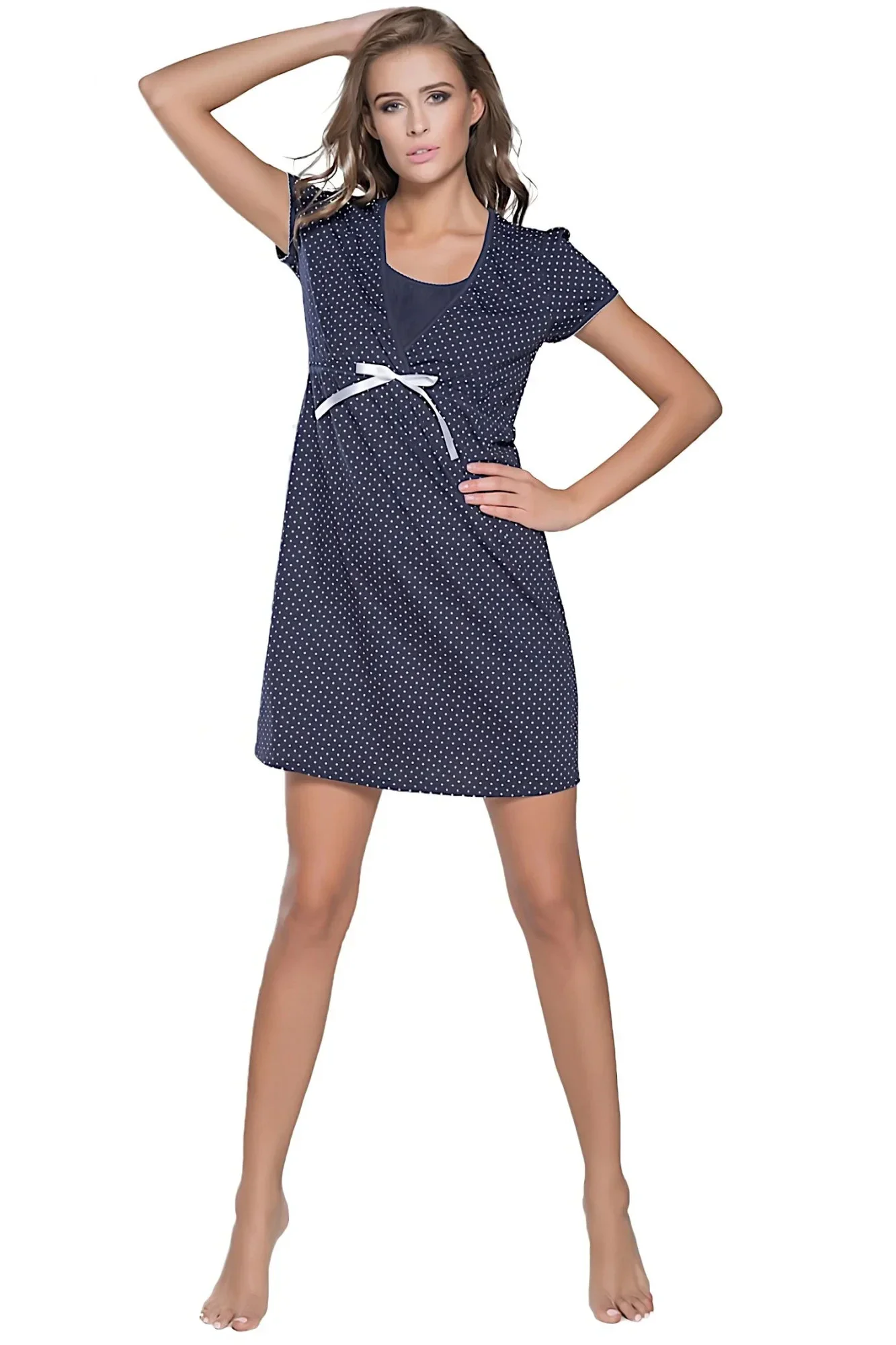 Dámská těhotenská košile Radosc blue ITALIAN FASHION - tmavě modrá barva - střih je uzpůsobený snadnému odnímání látky kvůli kojení - krátký rukáv - délka nad kolena - pod prsy mašlička na ozdobu - příjemný materiál