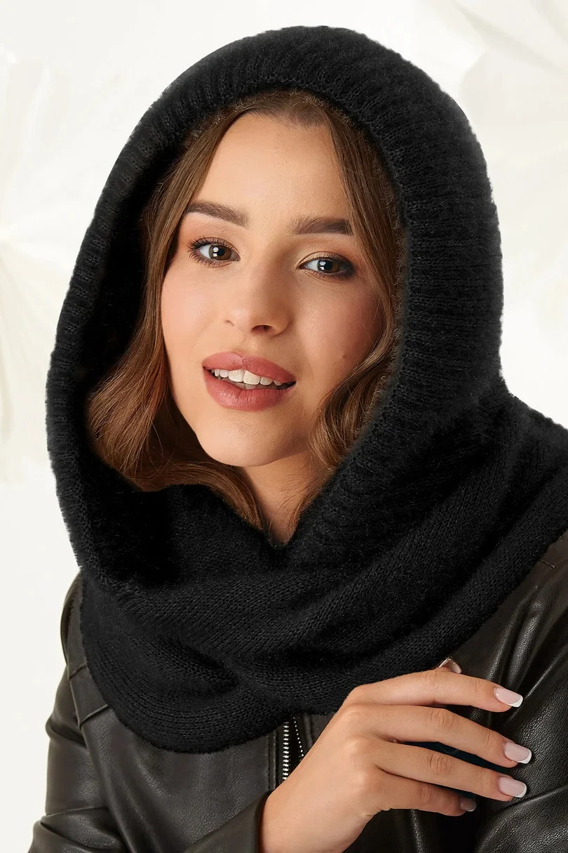 Dámská komínová šála s kapucí 48-495 Černá - AJS